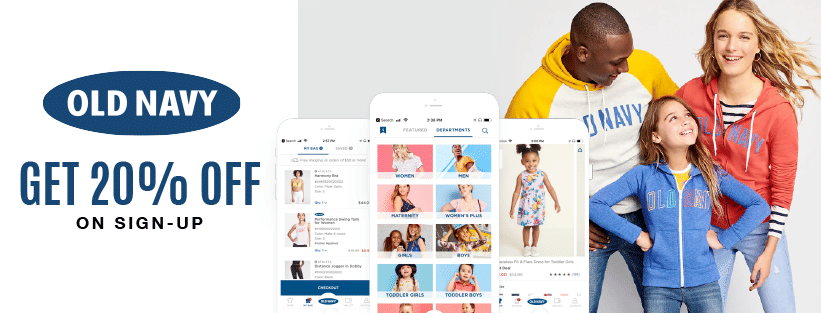 20% Off Orders With Old Navy Email Sign-up - Kouponed 30% Off Your Purchase When You Open an Old Navy Credit Card Get Deal $5 Off SALES & OFFERS Used Today $5 Off $35+ When You Sign Up For Texts Get Deal Special Offer SALES & OFFERS Used Today 2420 New Arrivals Styles From $8 Get Deal Free Shipping SALES & OFFERS Used Today Free Shipping on $50+ Get Deal 20% Off SALES & OFFERS Used Today