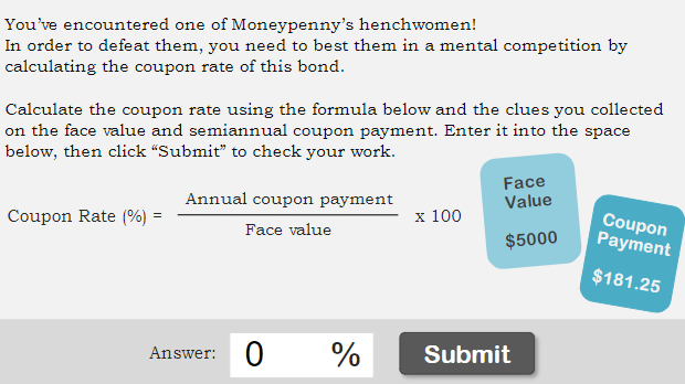 What Is the Coupon Rate of a Bond? - The Balance The formula to calculate a bond's coupon rate is very straightforward, as detailed below. The annual interest paid divided by bond par value equals the coupon rate. As an example, let's say the XYZ corporation issues a 20-year bond with a par value of $1,000 and a 3% coupon rate. Bondholders will receive $30 in interest payments each year ...